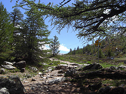 A short way up the slope, there is another one of the 5 famous lakes, Grindjisee. Grindjisee is surrounded by needle-leaved trees and it's tricky to find. In fact, I'd missed the lake last year. I recommend you walk as watchfully as possible so you don't miss it.