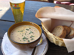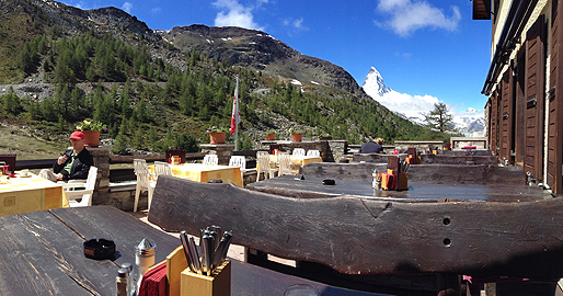 The Matterhorn was a little far from the restaurant but there was nothing like beer while seeing the Matterhorn capped with snow.