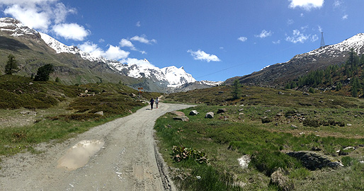 As altitude decreased, the snow of the mountains gradually disappeared. So I got off the train and I started to hike from Riffelalp station.