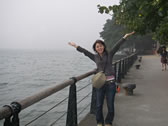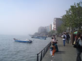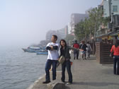 The fishing dock was covered by a fog during our stay and we couldn't see to the opposite shore. On this side of the river, Happy-looking couples were sitting on the riverside, elderly people were fishing easily...the waterfront had a nostalgic feel.