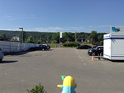 道を渡って、大きな駐車場を横切って・・・