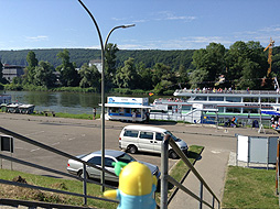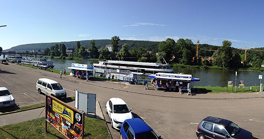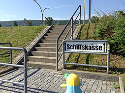 「Schiffskasse」の看板のある土手を登ると船着場に到着なっしー。