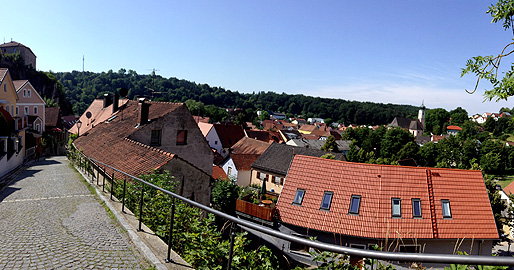 途中、長い石畳の階段を下っていくと右手に町並みが見えはじめ・・・
