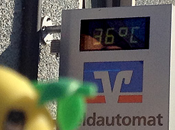 街中の温度計は36度を示してるなっしー。今日はフランスでは40度を超えたらしいなっしなー。暑いなっしー!