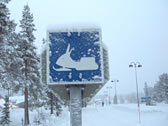 ■標識その1 スノーモービル用標識。道路には歩道・スノーモービル用道路・車道があるようですが、雪で覆われて何がなんだか。よーく標識を確かめましょう。