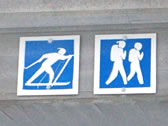 ■標識その2 左は・・・歩くスキーの人用でしょう。右は・・・ただの歩行者?なんで荷物を背負ってる?謎や。