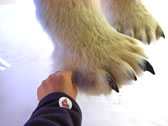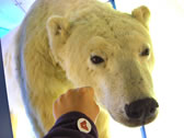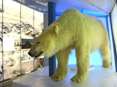 一方、北極圏センターは・・・パネル展示が多く英語案内ばっかりで辛い。ところどころ、ちょっとお金をかけた大学の文化祭並みの展示も多々あり・・・微妙。そんな北極センター展示の中でもお気に入りは「シロクマの剥製」。妙にリアル。急に動いたりする仕込みがあるんちゃうか、と思ってしばらく見ていましたが、何も起こりませんでしたー。 |