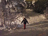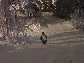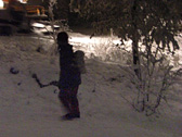 結局、オーロラでず。というか雲がはれず。 やむなく撤収・・・なんですが関西在住のMさん、雪が楽しいらしく歩き回り、滑ってみたり登ってみたりと雪面を満喫しております。そうか、そんなに珍しいのか、雪は・・・。温暖化ですねえ。
