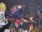 オーロラを待つ間、コタの中でお茶を飲みながら休憩。ジンジャークッキーを頂いたり、ソーセージを焼いてみたり・・・なかなか楽しい。外は寒いし、もうこのままオーロラが出なくてもOKじゃない?なんて気分にさせられます。