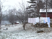 さて、翌日。ステイ先のお子様ティア嬢ちゃんと、おじいちゃんの案内でご近所を散歩です。湖、森・・・素晴らしい自然にも驚きますが、この天気で洗濯物を干しているフィンランド人に脱帽です。