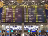 出発ロビーは2箇所に別れているようで、まずはこの電光掲示板で確認。さらに、便によってチェックインカウンター番号が決まっているのでそれを確認、決められたカウンターの大行列に並びましょう。この日(いつもなのか?)のカウンターは大行列で、チェックインするのに40分もかかりました!