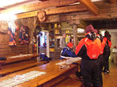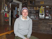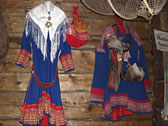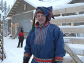 牧場のスタッフ。Saamiというラップランド地方(フィンランドの北の方)に住むもともとの民族だそう。青をベースに赤い模様のはいった民族衣装をきてます。すんでる場所によって、微妙に模様が違うんだそうです。