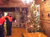 外はずーっと雪ですが、部屋の中はぽっかぽっかです。 写真右:ガイドのお姉さん。