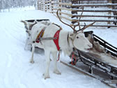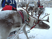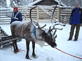 10分ほどでトナカイそり終了。スタート地点にもどります。 ご覧のとおり、私のトナカイだけ・・・ヤギですかこれは。