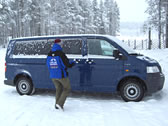 2時間ほどでツアー終了。 乗ってきた車は完全に氷ついてます。町に戻る前にガイドさんは雪かき三昧。 オフィスに戻り、靴を履き替えて本日終了。明日の犬ぞりも予約しているので、「防寒着を着たまま帰っていいよ」とのこと。見た目はナンですが、ホテルまでの帰り道は「無敵」でした。暖かーい。