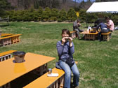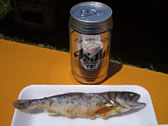 ヤマメの塩焼きとアサヒビールで休憩中であります。GW中なんで出店がでておりました。この他にちょっとしたおやつが食べられるお店があったりします。