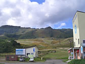 初めてみる雪のないニセコスキー場とゴンドラ乗り場。