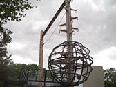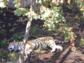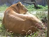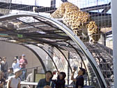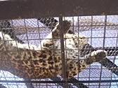 ■もうじゅう館 ヒョウ?ダと思う。ご覧の通り、なんだか不思議な檻の形になっていて、動物の真下から観察できる。「おしっこ注意」の貼り紙もあり。