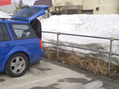 夜のうちに降った積雪が5-7cmほど。雪は気温がマイナスなのですぐに積もる。朝起きるとどこもかしこも雪で覆われていた。大阪だったら大渋滞の大パニックだなこれは。 |