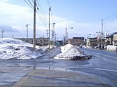 ここまで溶けましたよ。日々雪山が小さくなってきました。自転車ももう一息。しかし道路がぬかるんでいて、歩くのが嫌になる。たまらんです。 |