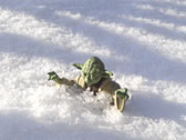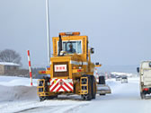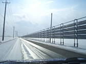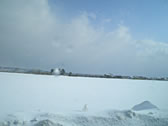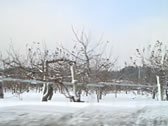 | 天気急変、ホワイトアウト。写真右は雪に埋もれたリンゴ畑。 |