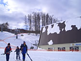 リべンジ、鯵ヶ沢スキー場。年末は吹雪のため駐車場でUターンしたので。本日まあまあ快晴でしょう。ここはプリンス系のスキー場で、ゲレンデレイアウトは富良野そっくり。当然ゴンドラの古くさーいウサギのキャラクターもフラノと同じ。 |