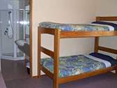 | 泊まっていた部屋。二段ベッドが2つ、シャワーとトイレ付。暖房・テレビもついている。毎日タオル交換に来てくれるし、お値段にしてはかなり居心地よし。 |