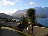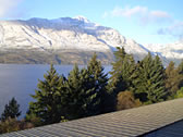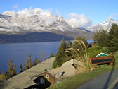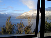 | 部屋からの眺めは最高。目の前にワカティプ湖とリマーカブルの山々が見える。ちなみに廊下を挟んだ反対側の部屋の眺めは…知りません(多分、土手でしょうな)。 |