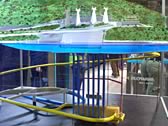 | ツアーのおまけ。地下水力発電所見学。湖の水を地下に落として発電している。バスに乗ったまま、えらいこと地中深くまでもぐって行く。なんか押しつぶされそうな息苦しさを感じた。写真の黄色いパイプが車で通ったトンネル部分。地震があったらえらいことです。 |
