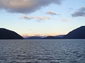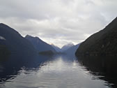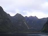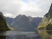 | 再びマナポウリ湖を渡り、港に帰る。朝別れたミルフォードサウンドに向かったバスが港まで迎えに来てくれていたので、それに乗り込みクイーンズタウンへ直行。往路で隣だった添乗員のお姉さんと再び並んでシートに座る。ミルフォードサウンドもとってもよい天気だったようです。 |