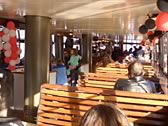 | 当日どっかの小学校の遠足にぶち当たってしまい、船内は嵐のような騒ぎであった。ちなみにケーキやサンドウィッチ、マフィン、コーヒーなどが売っているカフェがあるので、お腹が空いても大丈夫。綺麗なトイレがあるので、お腹が痛くなっても大丈夫。後ろの方でオルガン(?)の生演奏もやっている。 |