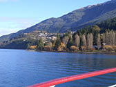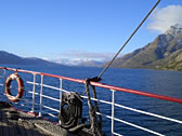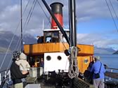 クイーンズタウンからウォルターピーク牧場まで、昔は6〜7時間ほどもかかっていたらしいが、現在の観光用蒸気汽船でたったの1時間。波もないので快適快適。船内もとっても綺麗。 |