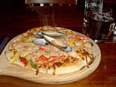 写真/ピザ1枚。宅配ピザのMサイズよりでかい。ちなみにこれ以上小さいサイズは無い。一人1枚づつ食べているカップル、小学生を連れた家族連れを目撃した。当然皆さん完食だった。 |