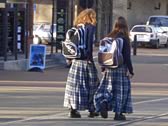 寒いから?どこの制服もものすごいロングスカート。日本の女子高生に見せてやりたい。 |
