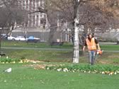 朝も早くから落ち葉を集める掃除のお兄さん。ご苦労さんです。 |