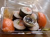 パックに入ったお寿司を売っているが、店内のテーブルで食べてもOK。サーモンの巻寿司にサーモンの握り、とにかくサーモン尽くしで笑った。サーモン大好きなんで大満足。そんなに高くもないし。 |