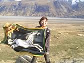で、どうです。ガイドのマットさんから旗をかりて記念写真。来てよかった〜。