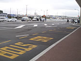 | オークランド空港のターミナル間無料シャトル乗り場。乗り場が分からなくて警備のおばちゃんに聞いてしまった。他の客もみんなその辺の人に確認してるし。相変わらずろくなサインもないシャトル乗り場。なんとかしてくださいよオークランド国際空港さん。 |