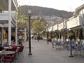 写真中/(きっと)クイーンズタウン・モール。この筋に小さいけど映画館がある。平日は大人NZ$9(約700円)と激安お値段。「スターウォーズ」「Mr and Mrs Smith」もここで見た!二本見ても日本の一本分より断然お安い!