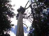 この写真を見ても分かるように、カウリの木というのは幹に枝がありません。育つにつれて枝が落ち、冠のように上部にだけ枝が残ります。こういうところも建物の建材や船の材料として、大量に伐採された原因の一つだそうです。ちなみに成木は高さ40m以上、幹の直径3-4mもの大きさになります。そのままくり抜いても、ちょっとした家になりそうです。 |