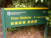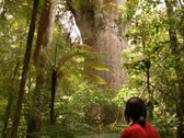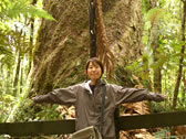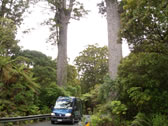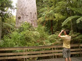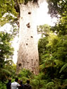 「森の神」という意味の名前を持つ「タネ・マフタ」。高さ51m・幹周り14m、推定樹齢1200-1500年。とりあえず現存する最大(高さ)のカウリの木だそうです。確かにデカイ。 |
