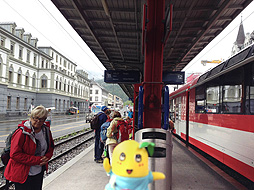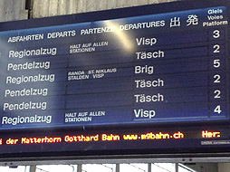 You have to transfer two times to get to Riederalp from Zermatt. The first transfer is at MGB's Brig station. Similarly to a tram system, there are platforms without station buildings, so it's easy to transfer. In addition, although there are only platforms, there are useful monitors for information about trains and it's very tourist-friendly!