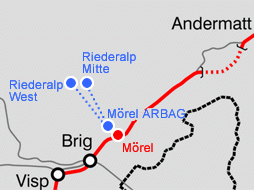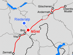 The 2nd transfer is at Moerel station of MGB and you have to switch to an aerial cable car heading for Riederalp.