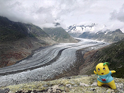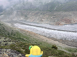 氷河を右に見ながら歩くなっしー。