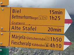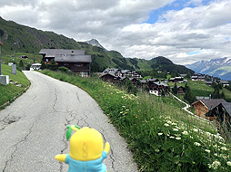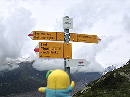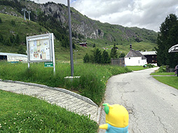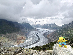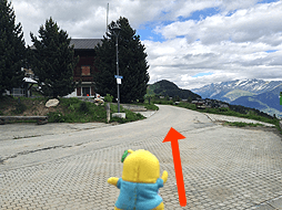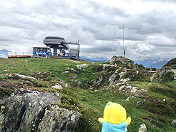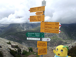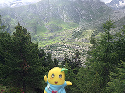 ちなみに案内板では、ここモースフルー展望台からベットマーホルン山頂駅まで『1時間25分』となってるなっしー。ふなっしーがさっき歩いてきた道を逆にいくなしなー・・・1時間25分なんて絶対無理なっしー!