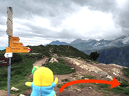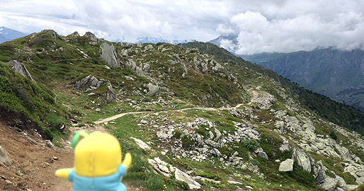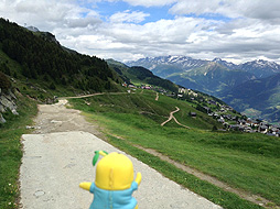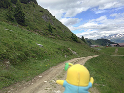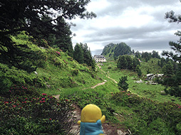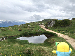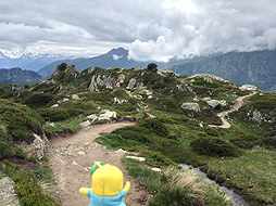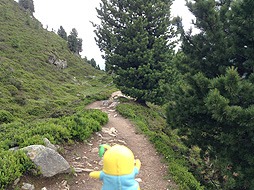 尾根づたいに、ここからさらにホーフフルー展望台を目指すなっしー。