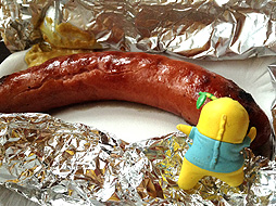 夜ご飯は、お肉屋さんの店頭で売ってる『焼きソーセージ』とドイツビールなっしー!やっぱりビールのお供はソーセージに限るなっしなー。