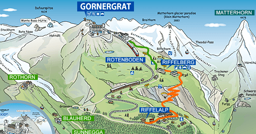 ローテンボーデン(Rotenboden)、リュッフェルベルグ(Riffelberg)を通り過ぎ、さらに下にあるリュッフェルアルプ(Riffelalp)目指してずんずん下るなっしー。