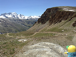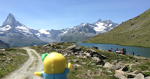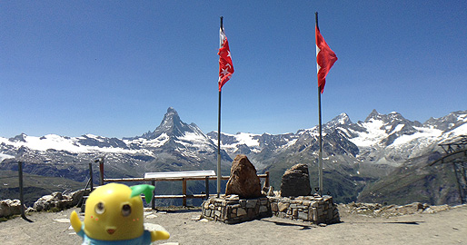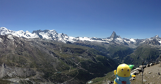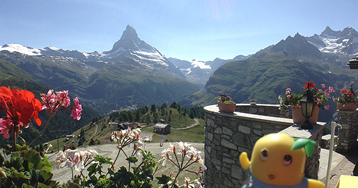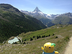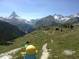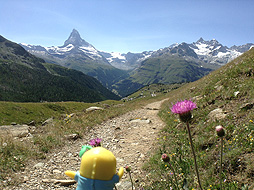 スネガまでは、マッターホルンを正面にみながらの簡単なハイキングコースなっしー。ここもよく団体さんが歩いているのを良く見るなっしなー。
