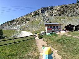 湖の脇には超・短いケーブルカーがあって、スネガ駅と繋がっているなっしー。